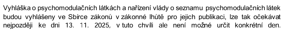 - vyhláška o psychomodulačních látkách (platná od 8.11.2025)